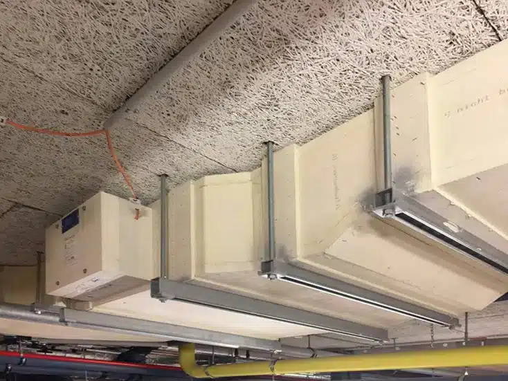 About 80% of all fire victims die as a result of smoke poisoning. Above all, the high concentration of carbon monoxide in the flue gases leads to unconsciousness or even death by suffocation after a very short time. If these gases are not deflected in a controlled manner, evacuating survivors is almost impossible. In order to solve this problem, so-called mechanical smoke extraction systems (MRA) are installed inside buildings. These systems connect controlled suction points with exhaust openings into the environment. Since flue gases can reach temperatures of up to 1000 ° C, these smoke extract ducts must be fire-resistant.