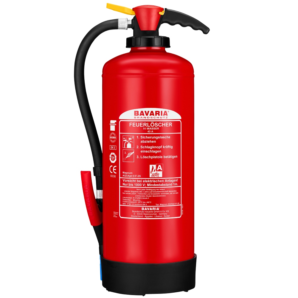 Water fire extinguisher, 9 liters, with antifreeze protection for outdoor areas.